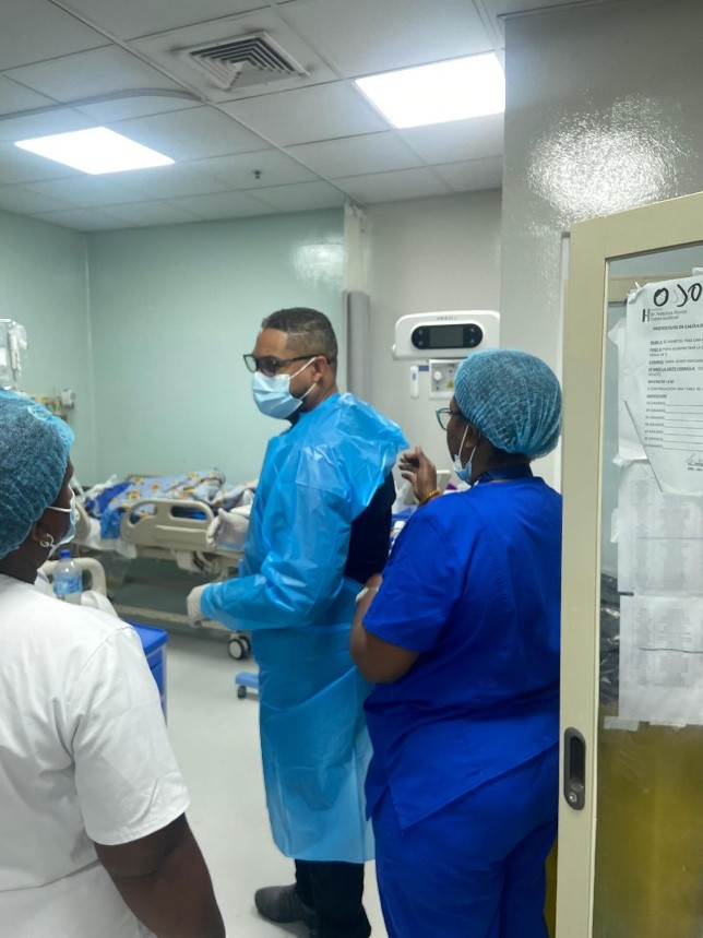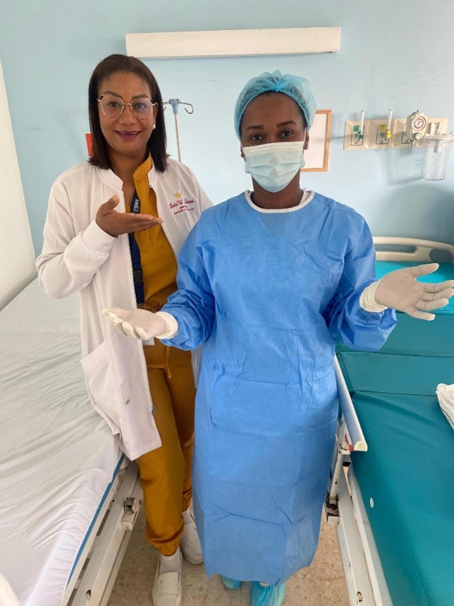 Boca Chica, R.D.- La dirección del Hospital Dr. Francisco Vicente Castro Sandoval, a cargo del doctor Emmanuel Suazo Liberato, a través del Departamento de Epidemiología, realizó una práctica del uso correcto de los Equipos de Protección Personal (EPP) en la Unidad de Cuidados Intensivos (UCI, UCIN), Quirófano y Sala de Internamiento. Impartida por la enfermera de vigilancia epidemiológica y control de infecciones (IAAS), licenciada Walquidea Acevedo.